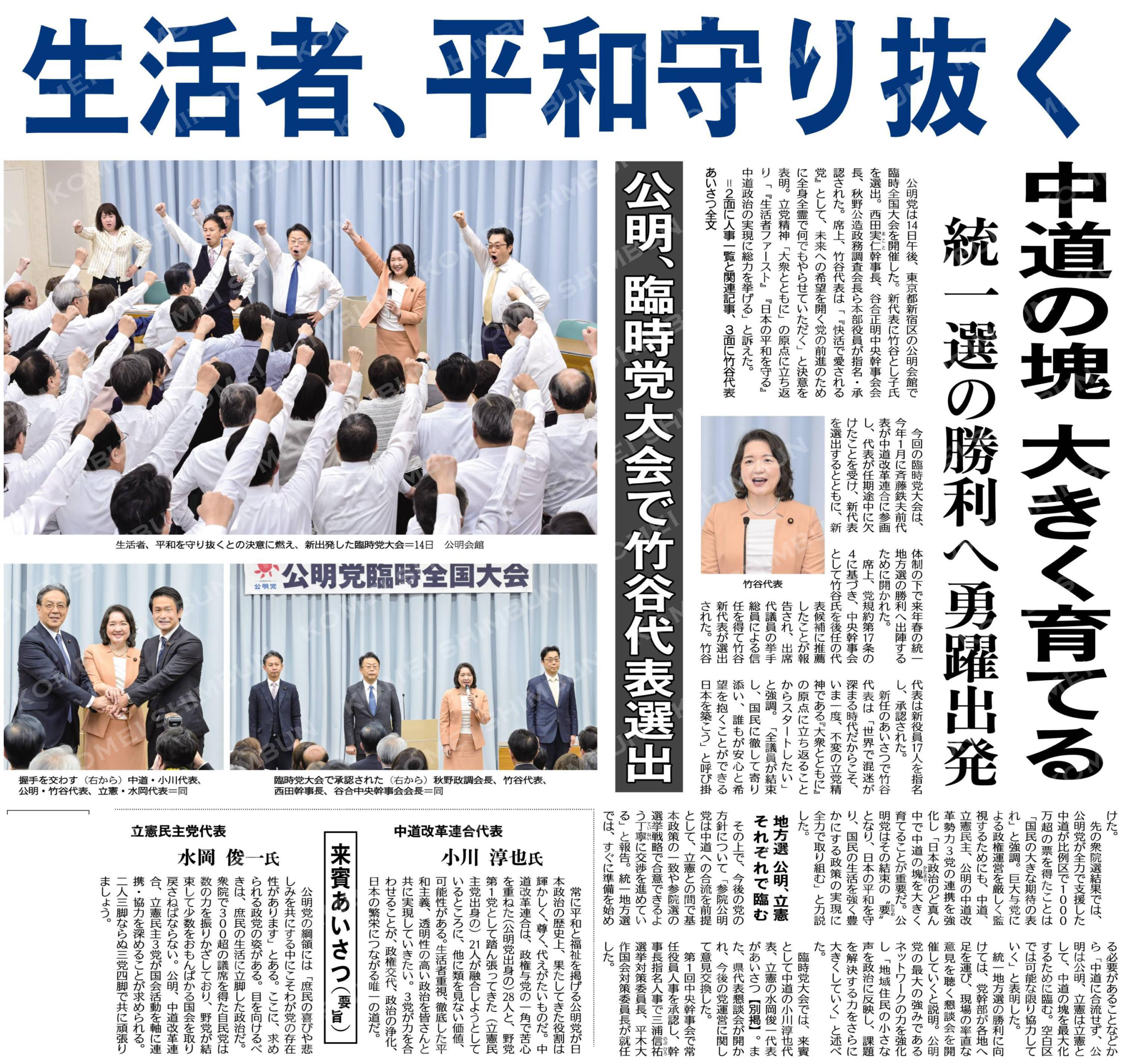 立党精神「大衆とともに」の原点に立ち返り、生活者ファースト、日本の平和を守る中道政治の実現へ。